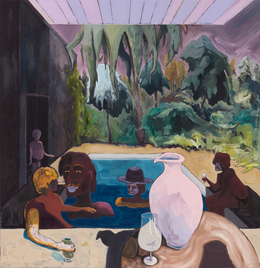 Poolparty in the Shadow 2020 Oil and mixed media on canvas 150 x 145 cm
