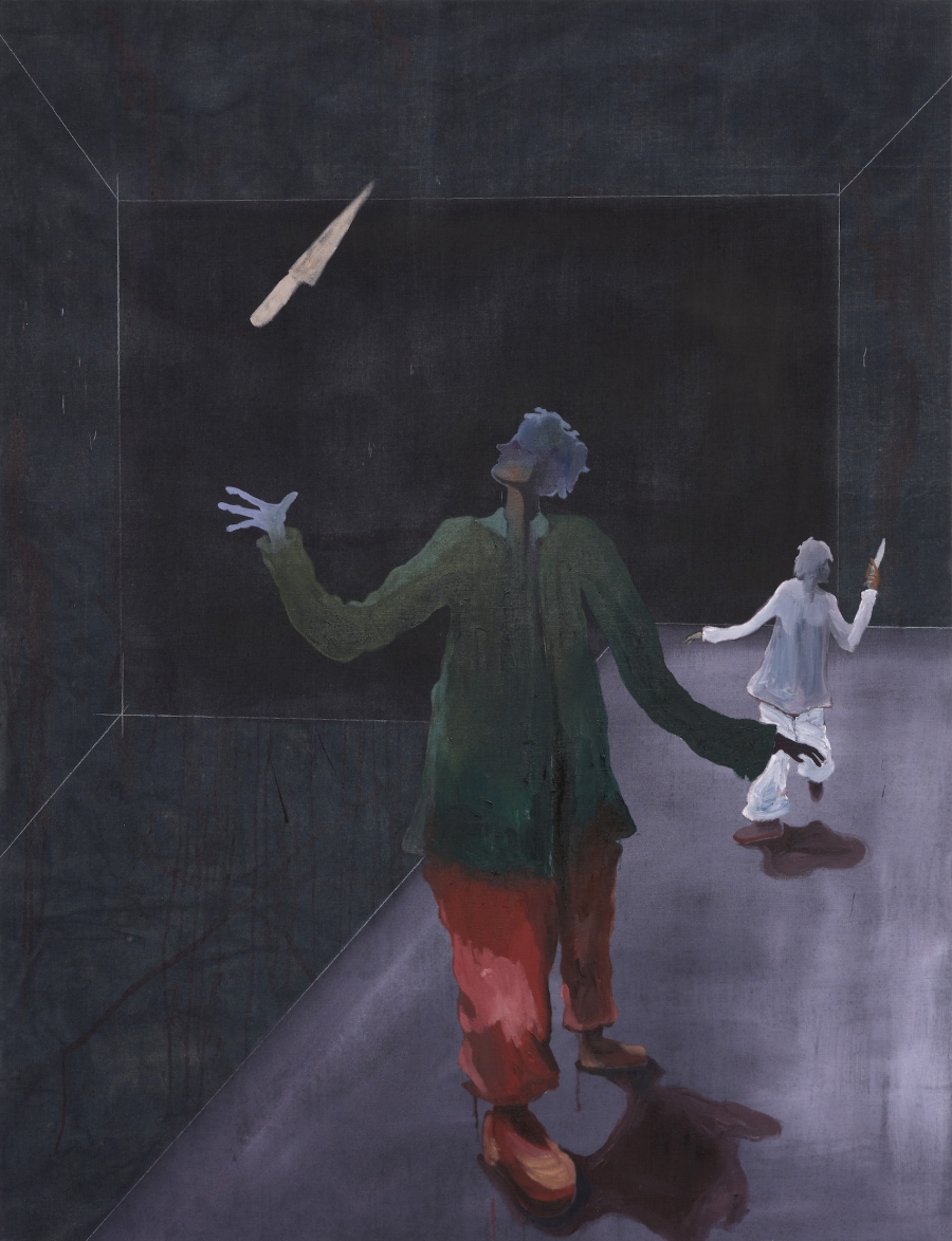 Schwertschlucker 2020 Oil and mixed media on canvas 170 x 130 cm