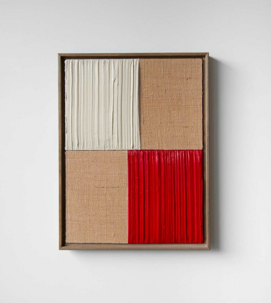 Untitled, White & Red IV 2021 Acrylic and oil on burlap 41 x 31 cm