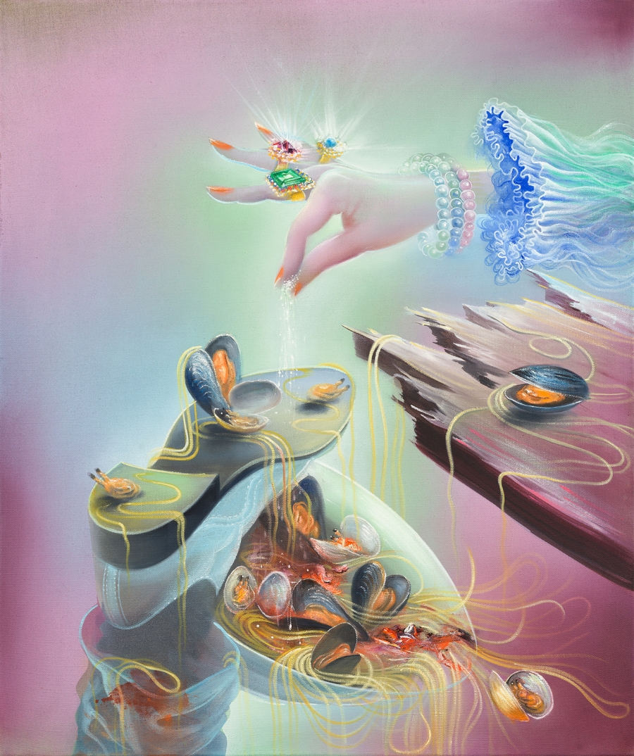 Au Dessus et en Dessous de L ́Avant Oil on primed raw canvas 95x80 cm