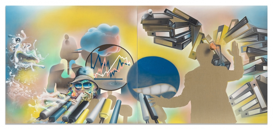 About 2018 Oil on primed raw canvas 205 x 450 cm