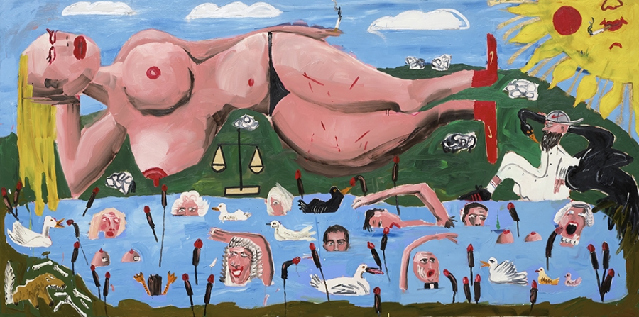 Coq au vin, 2016 Oil,acrylic and spray paint on canvas 200 x 400 cm