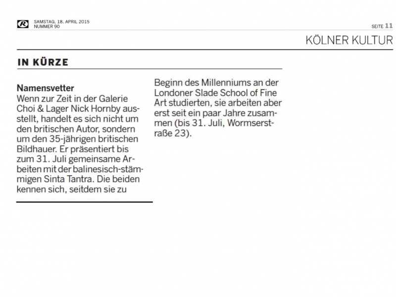 Choi&Lager gallery is introducing their new exhibition with Nick Hornby and Sinta Tantra. Often confused with the famous British author, the British sculptor Nick Hornby and the Bristih Balinese painter Sinta Tantra have created colorful sculptores during their collaboration. The artists have met during their time at the London Slade School of Fine Art.