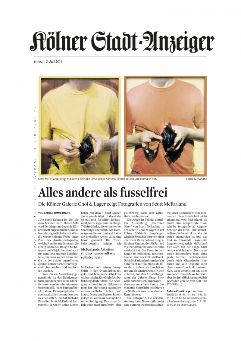 Kölner Stadt Anzeiger for the current released article about Scott McFarland's solo exhibition at Choi&Lager Gallery COLOGNE. Writer: Damian Zimmermann