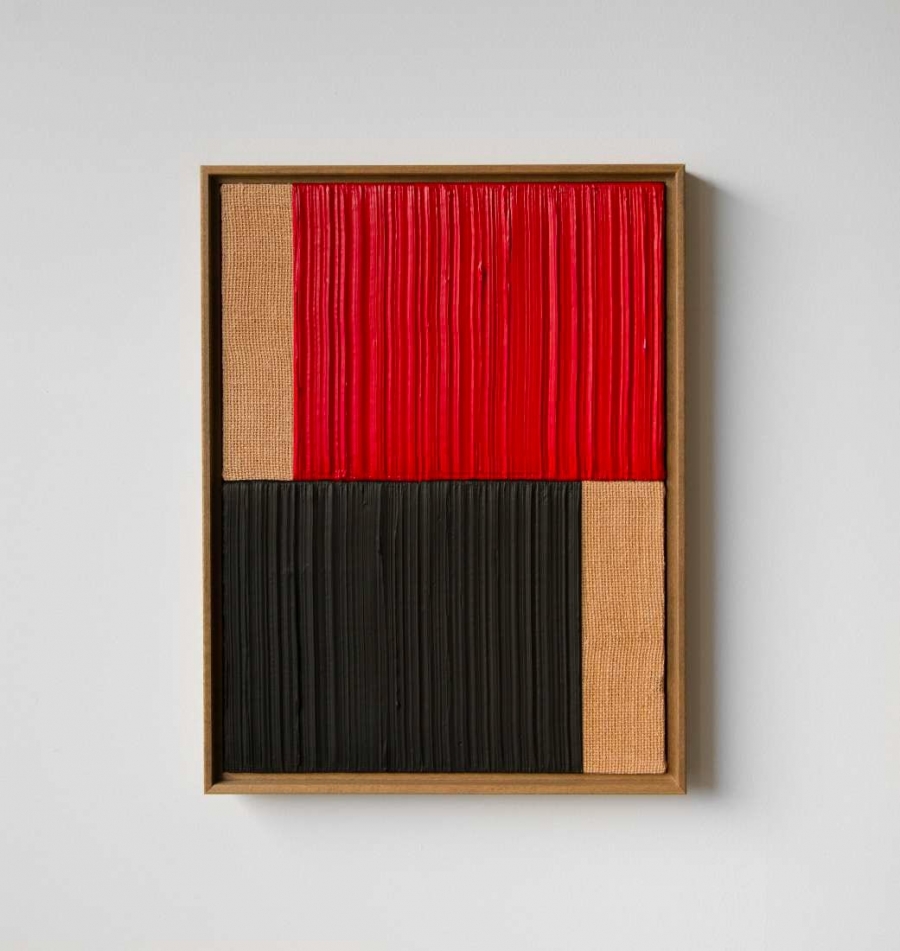 Untitled, Red & Black 2021 Acrylic and oil on burlap 41 x 31 cm