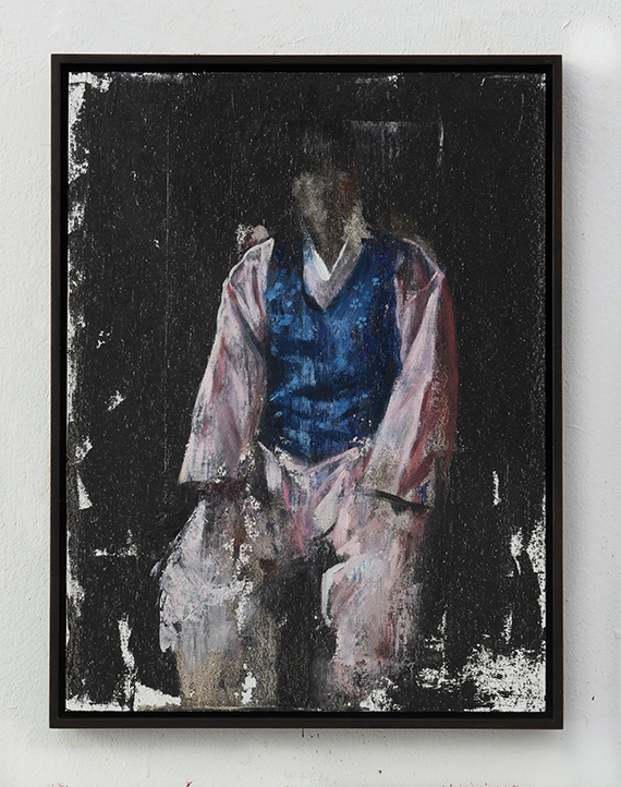 Man with the blue vest 2020 Oil on Cardboard 42 x 32 cm