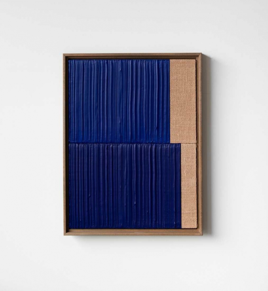 Untitled, Blue VIII 2021 Acrylic and oil on burlap 41 x 31 cm
