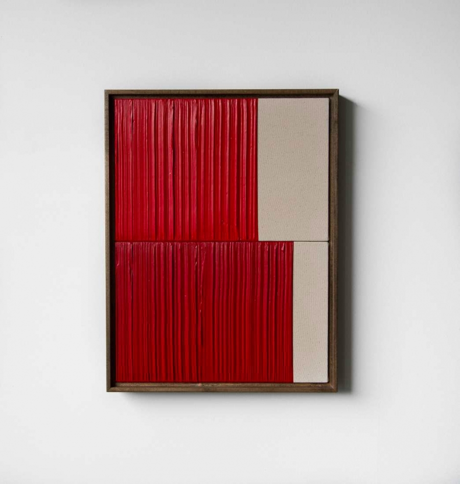 Untitled, Red IV 2021 Acrylic and oil on burlap 41 x 31 cm