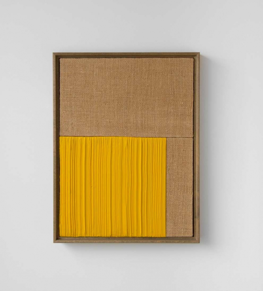 Untitled, Yellow V 2021 Acrylic and oil on burlap 41 x 31 cm