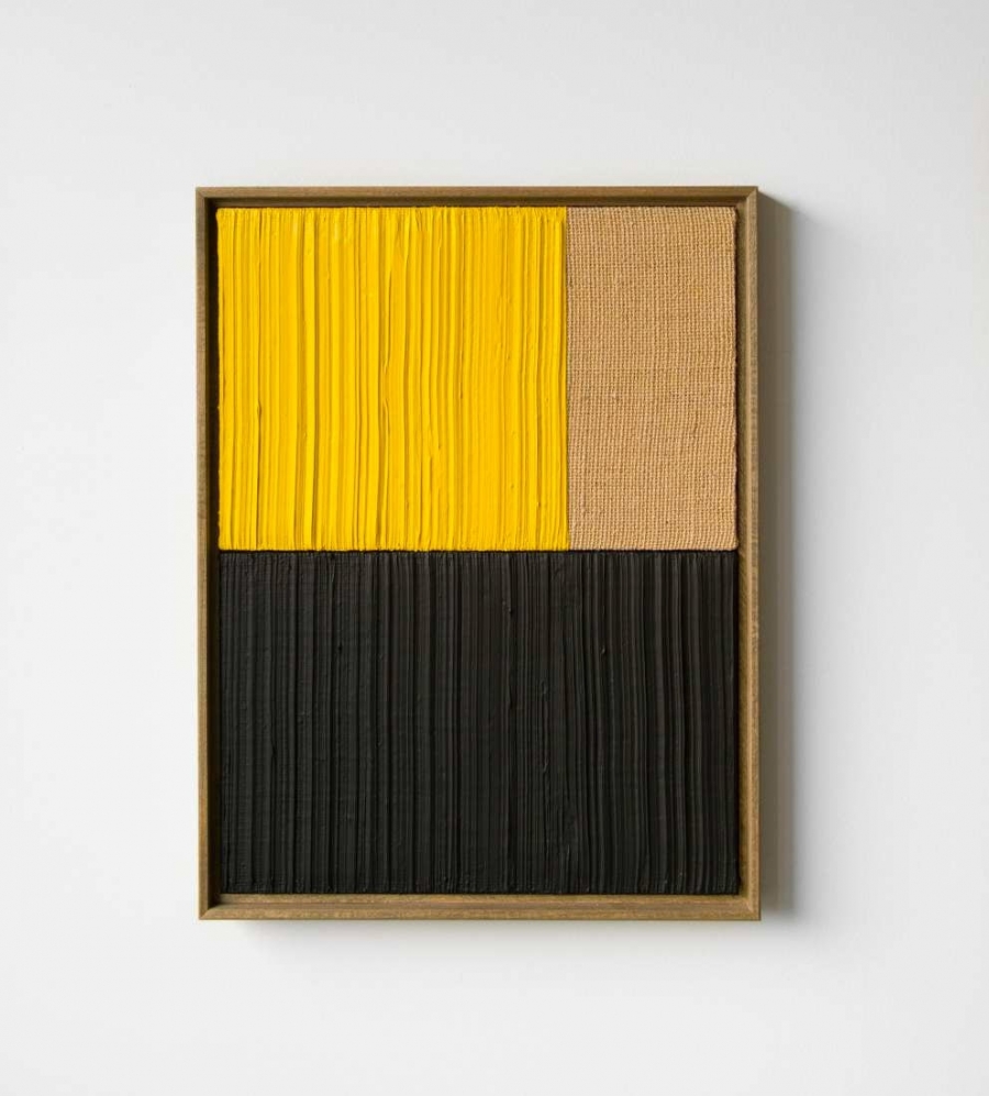 Untitled, Yellow & Black I 2021 Acrylic and oil on burlap 41 x 31 cm