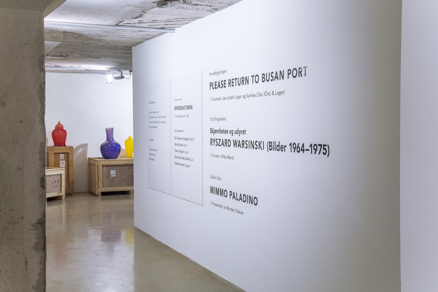 Exhibition view 'Please Return to Busan Port' Vestfossen Museum, Norway, Photograph by Nina Ansten